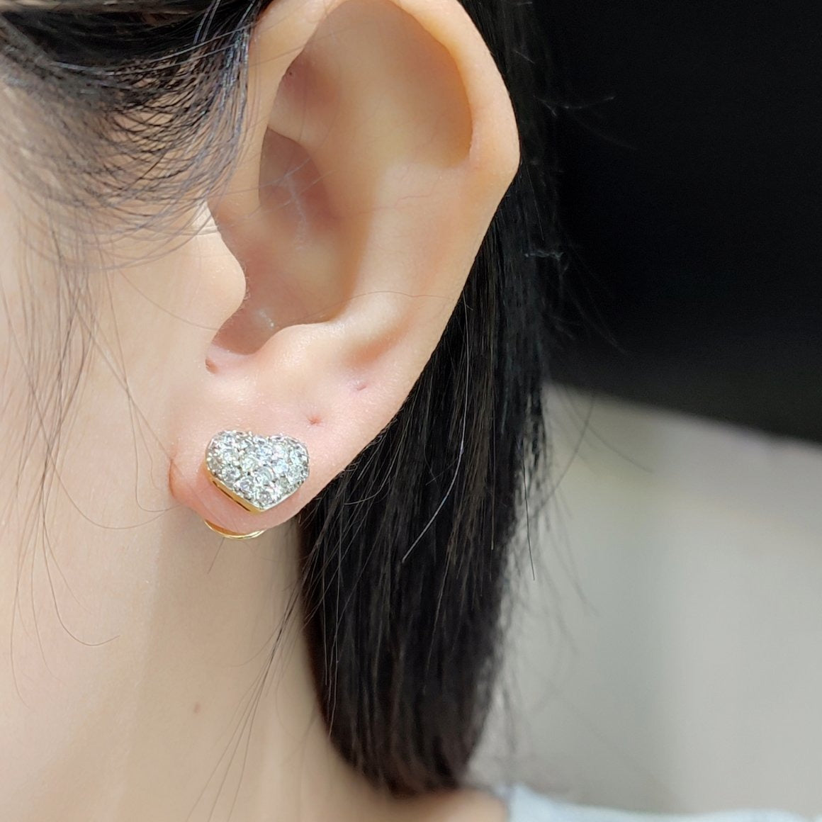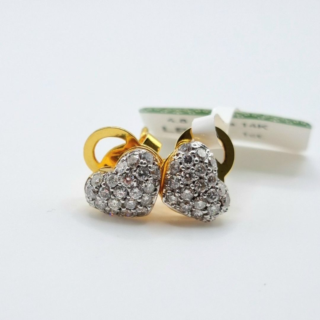 1.0 CT Diamond Heart Earrings 14K Yellow Gold