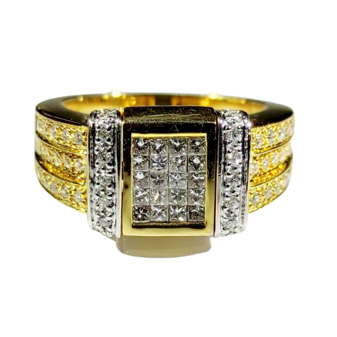 1.0 ctw Square Cluster Diamond Men's Ring 14K Gold