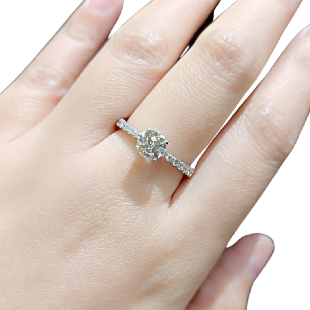 ✅ Stone: approx .75ctw Round Center Diamond, .25ctw Round Side Diamonds, VS1, J color