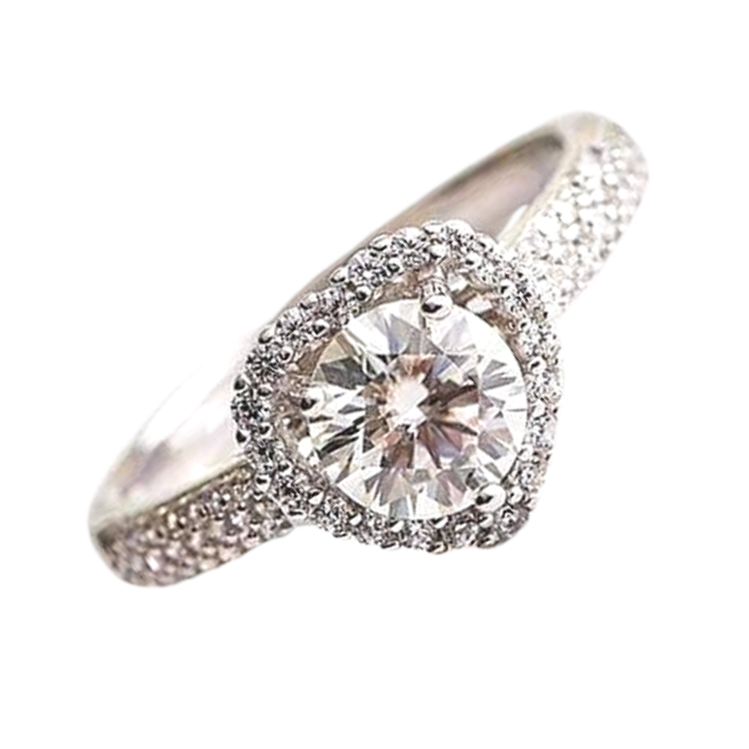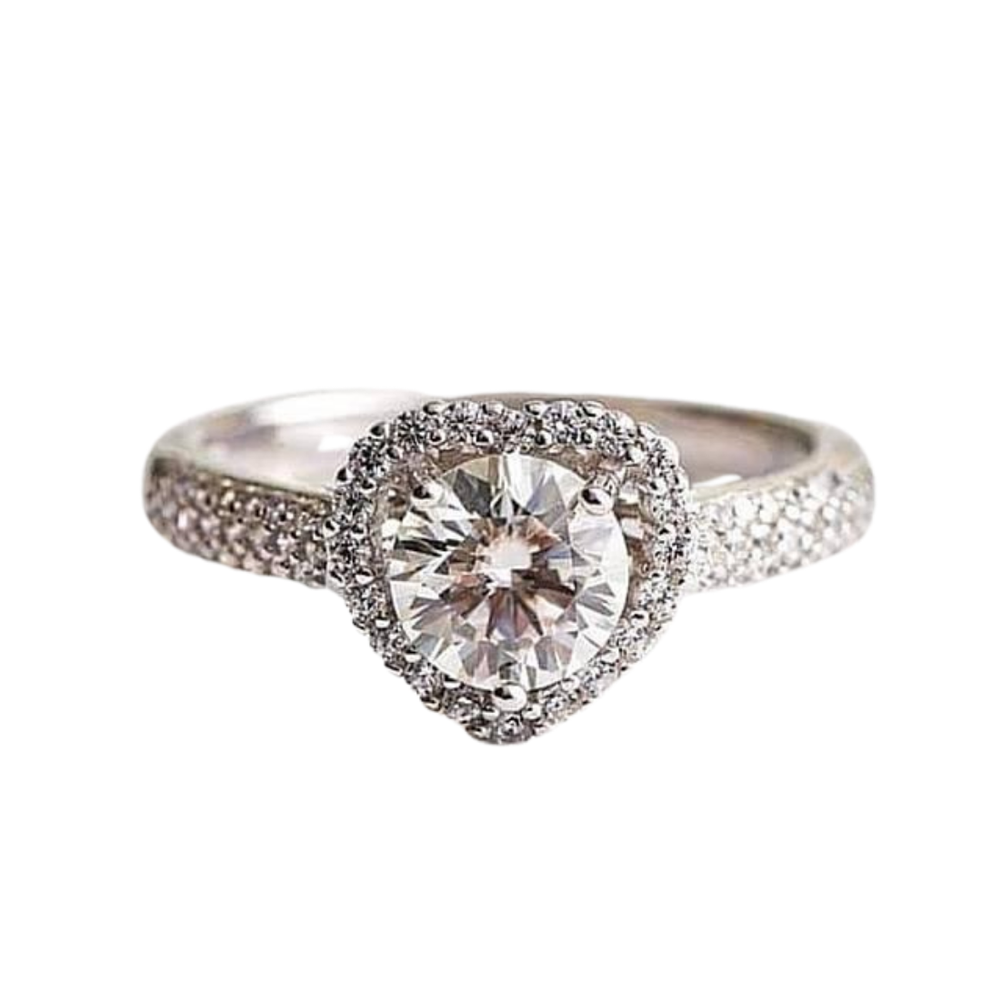 1 Carat Round Moissanite Engagement Ring. Heart Halo Ring. High Quality Engagement Ring. Sterling Silver Promise Ring.
