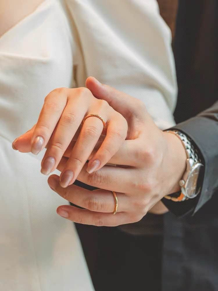 Tired of the usual wedding ring designs but still want a hint of the classics? Why not personalize your own wedding rings with this stylish side engrave of your wedding date? We added a touch of a hidden natural diamond gem to complete a twist on your classic but still trendy jewelry piece.