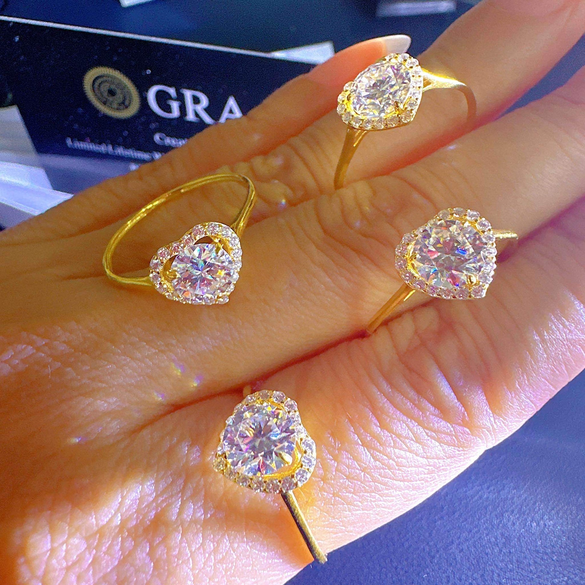 2CT Heart Halo Moissanite Solitaire Engagement/Women's Ring 18K Yellow Gold