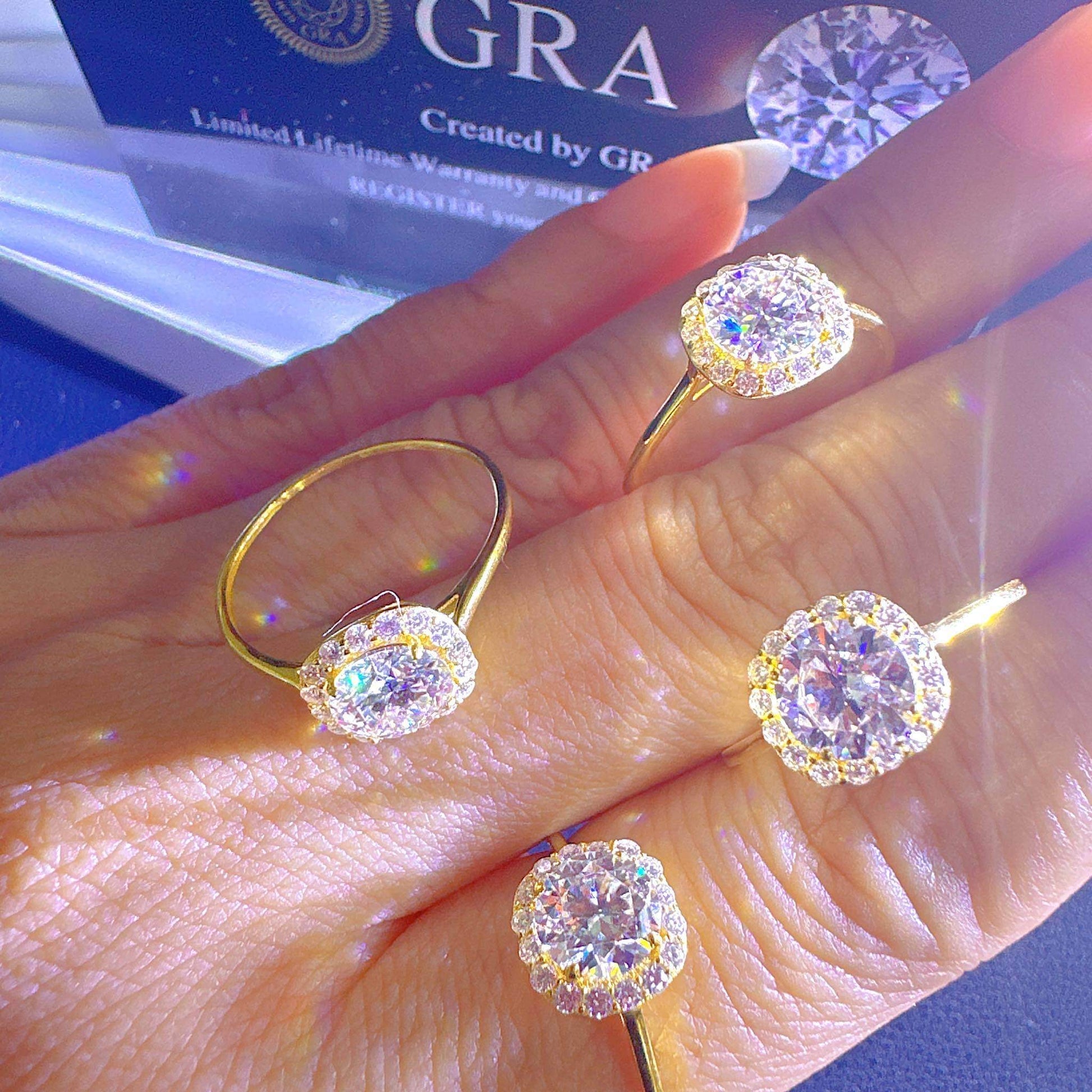 2CT Round Halo Moissanite Solitaire Engagement/Women's Ring 18K Yellow Gold