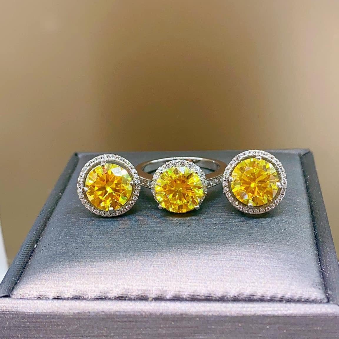 3 carat Round Yellow Moissanite Engagement Ring and Earrings