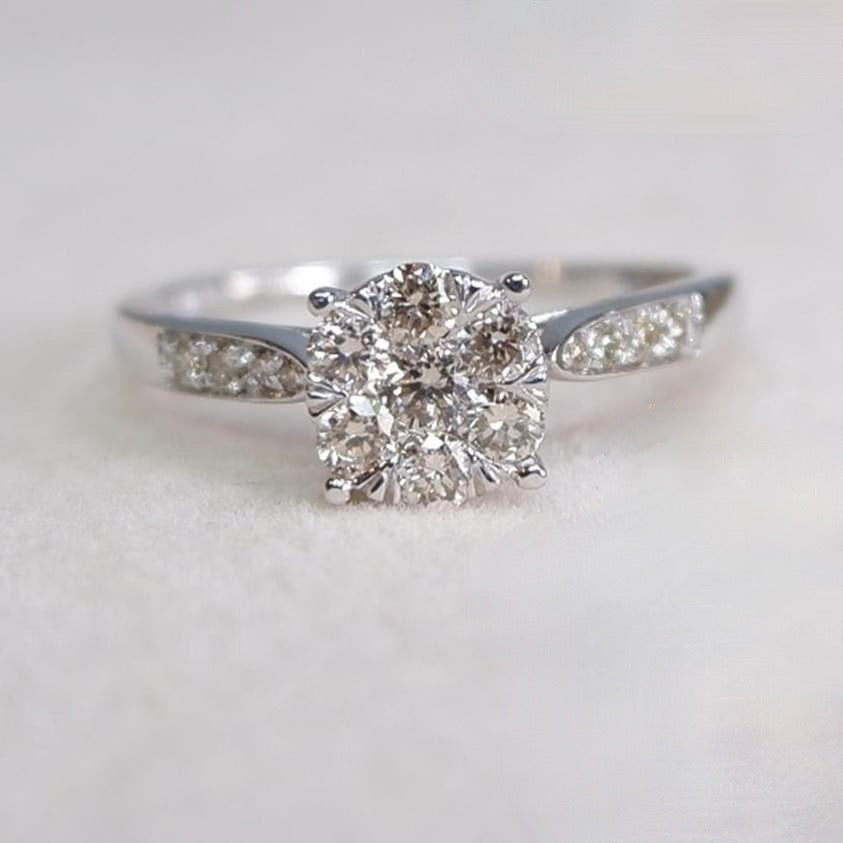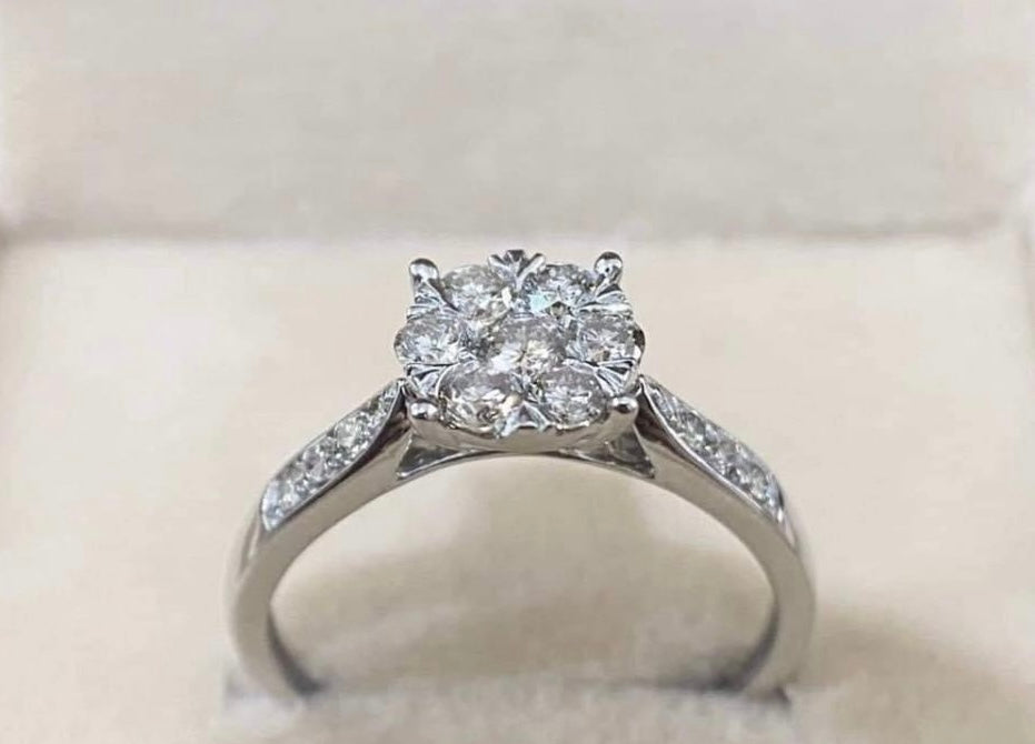 Beautiful style engagement ring in 18K White Gold. Engagement Ring has 2carat illusion face diamond that flashes brightly against the light. Its stunning infinity band which rests seductively on the finger is a sight to behold.