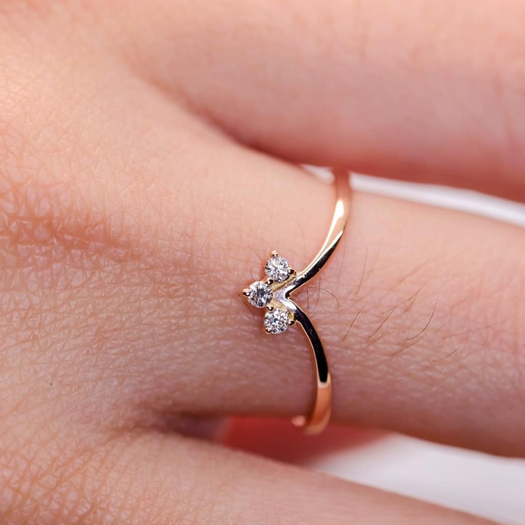 ARABELLA .06ctw Diamond Bridal V-Shaped Wedding Ring / Women's Stacking Ring