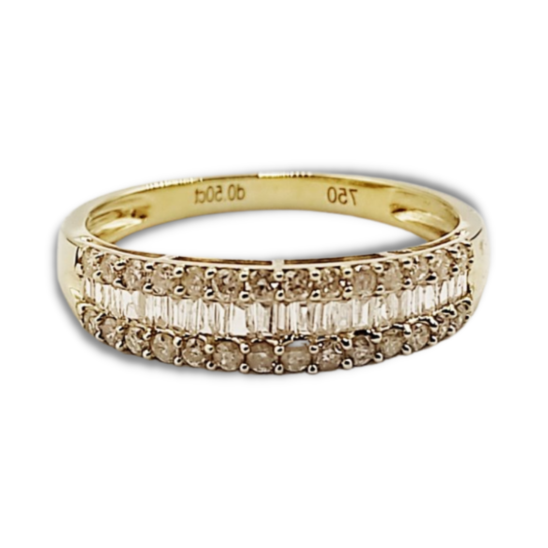 Baguette with Round Sides Half Eternity Diamond Ring, Wedding Band for Women 18K Yellow Gold