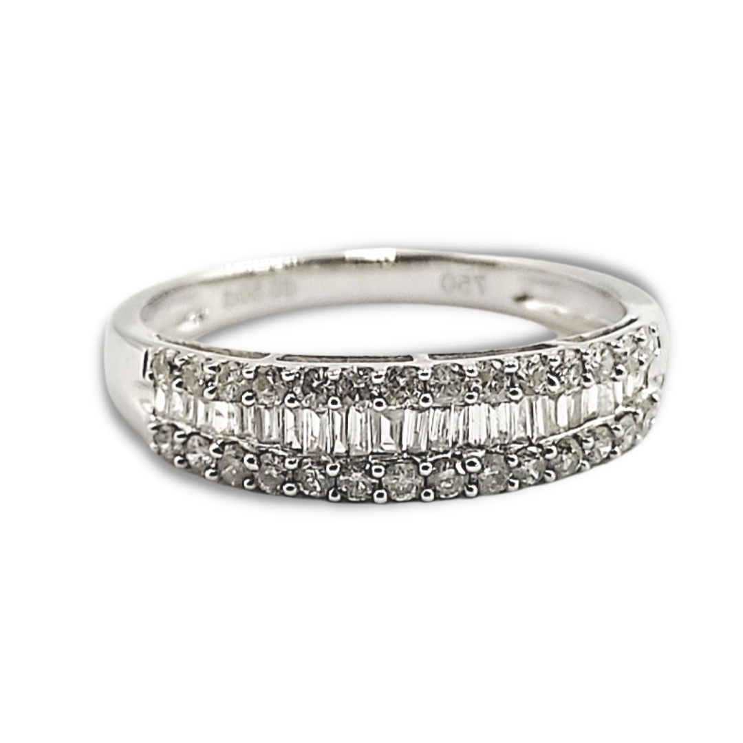Baguette with Round Sides Half Eternity Diamond Ring, Wedding Band for Women 18K White Gold