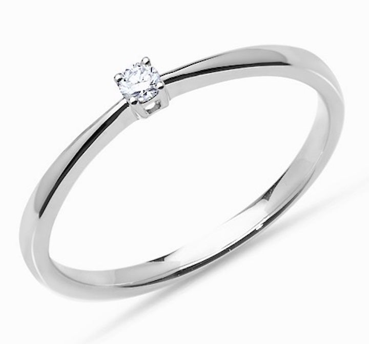This ring will symbolize your promise of a sweet future with her. A cute diamond peeking between two gold bands, tiny yet unmistakeable in its brilliance.
