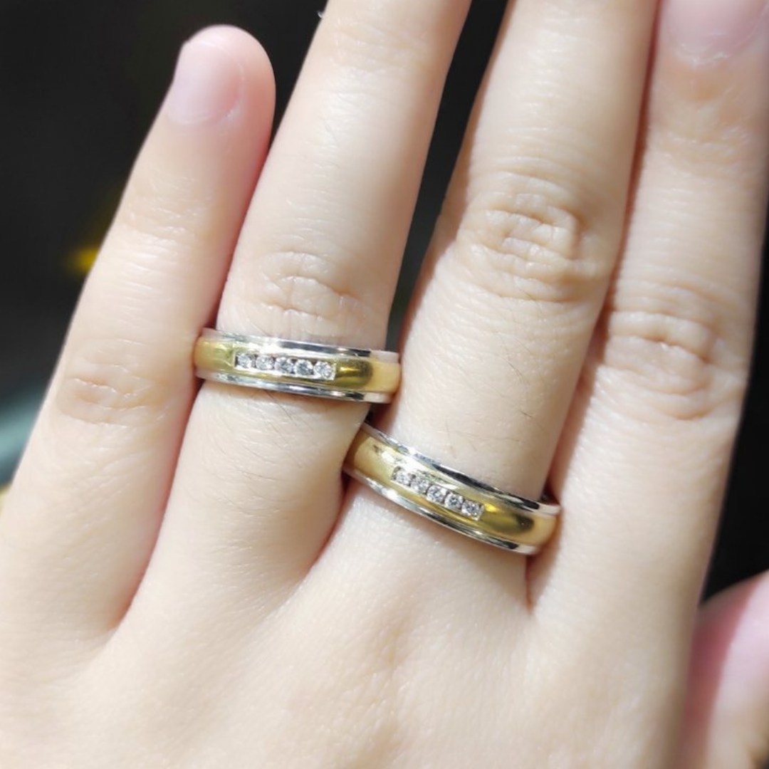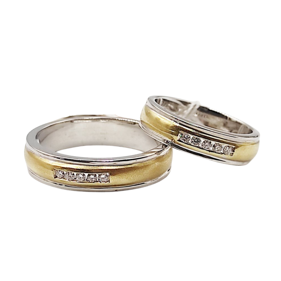 Channel Diamond Two-Tone Wedding Rings Features: