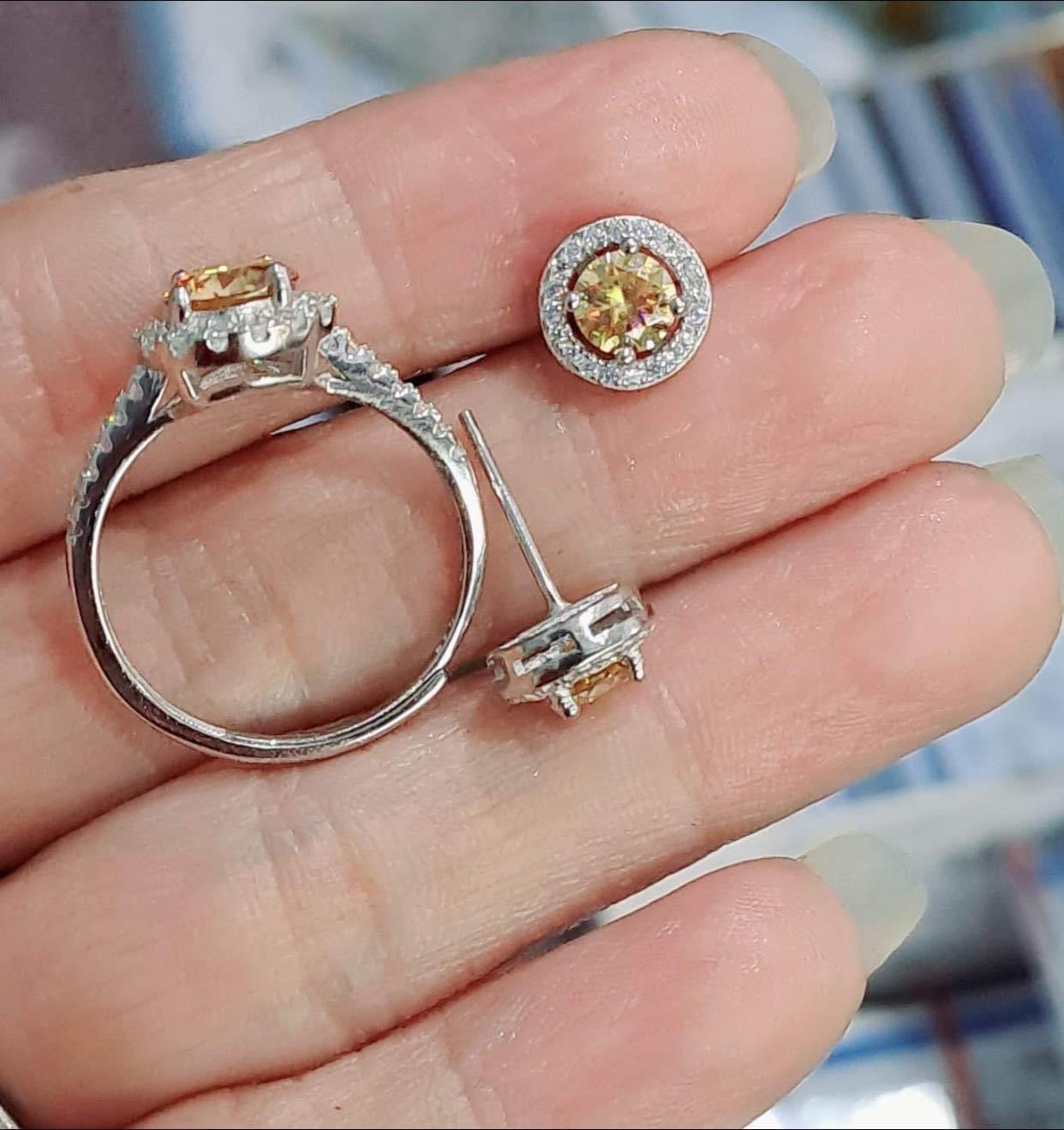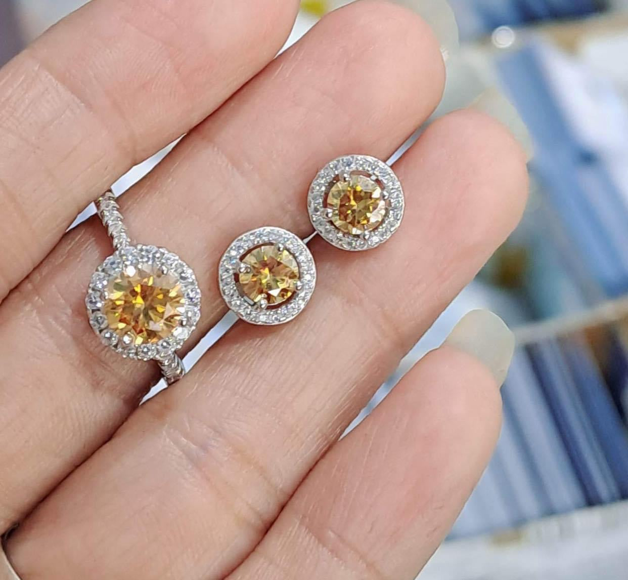 This elegant Citrine Moissanite Jewelry Set 925 Silver features a stunning citrine moissanite gemstone, an adjustable ring, and a halo all crafted from 925 silver and moissanite. The combination of these exquisite materials offers brilliance and sophistication that you can enjoy for years to come.
