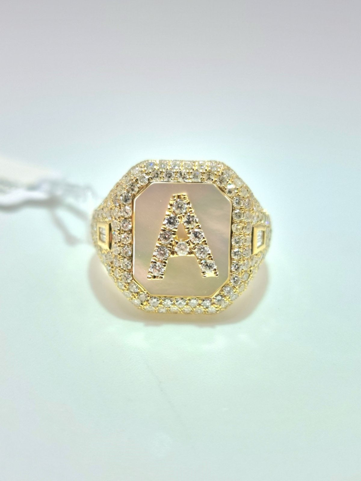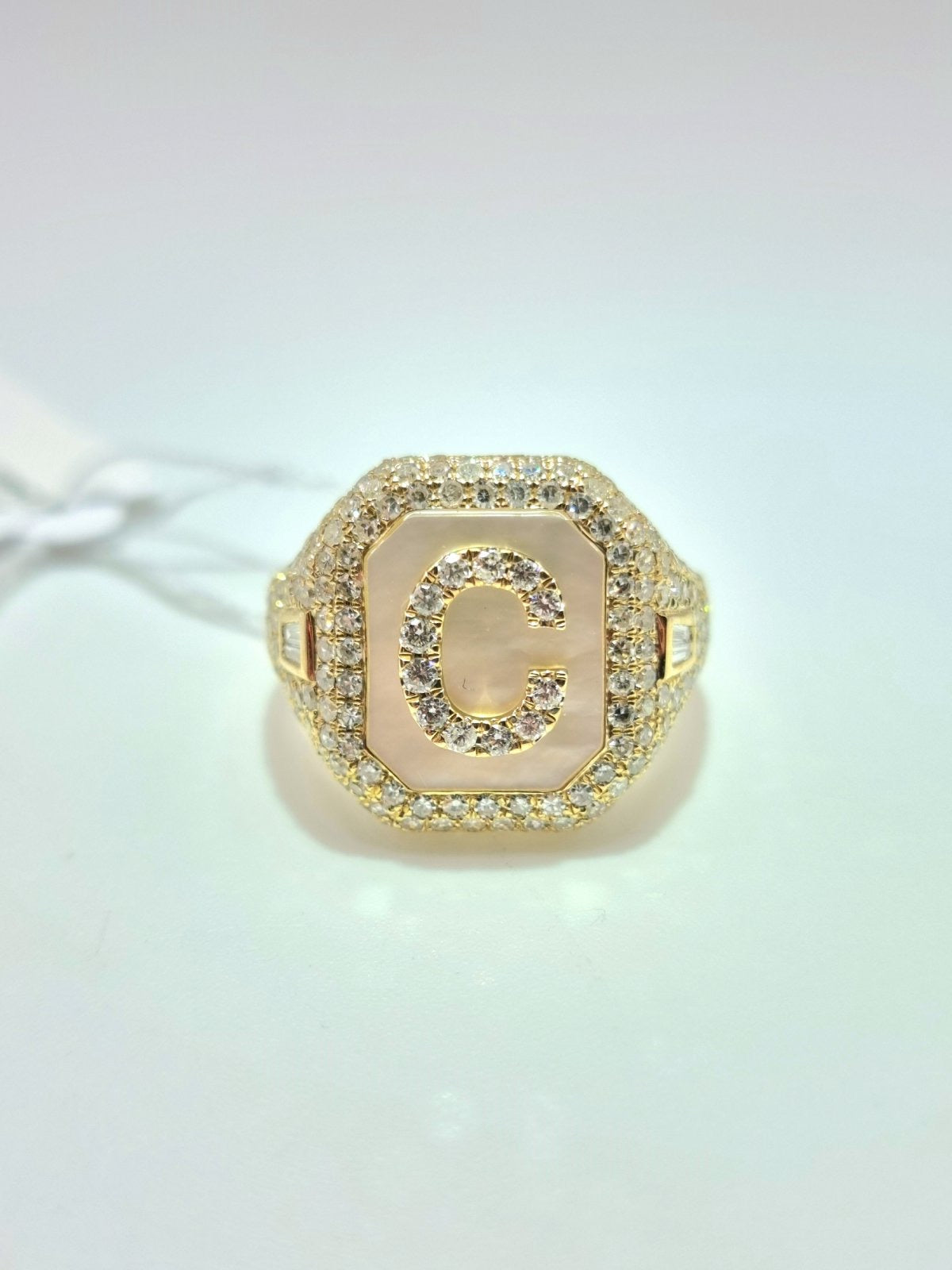 Diamond Initial Pinky Ring 14K Yellow Gold