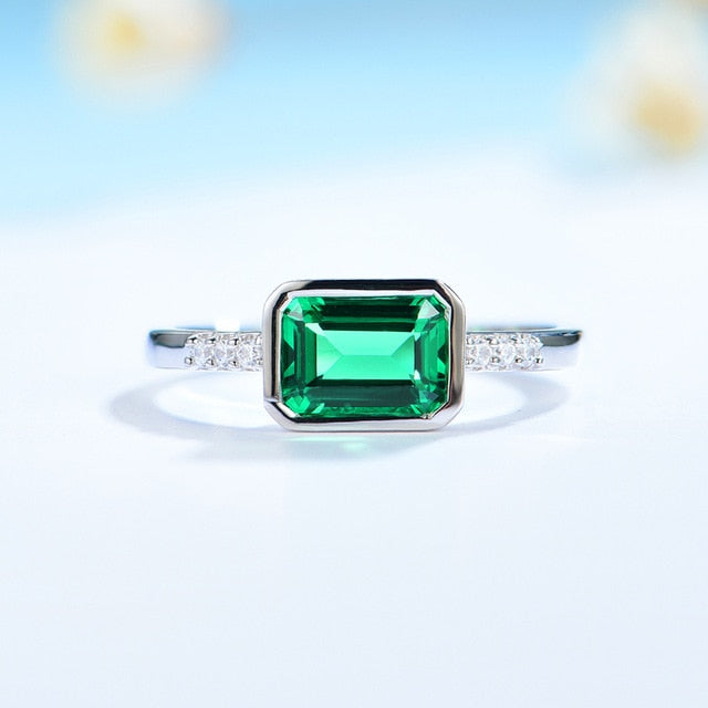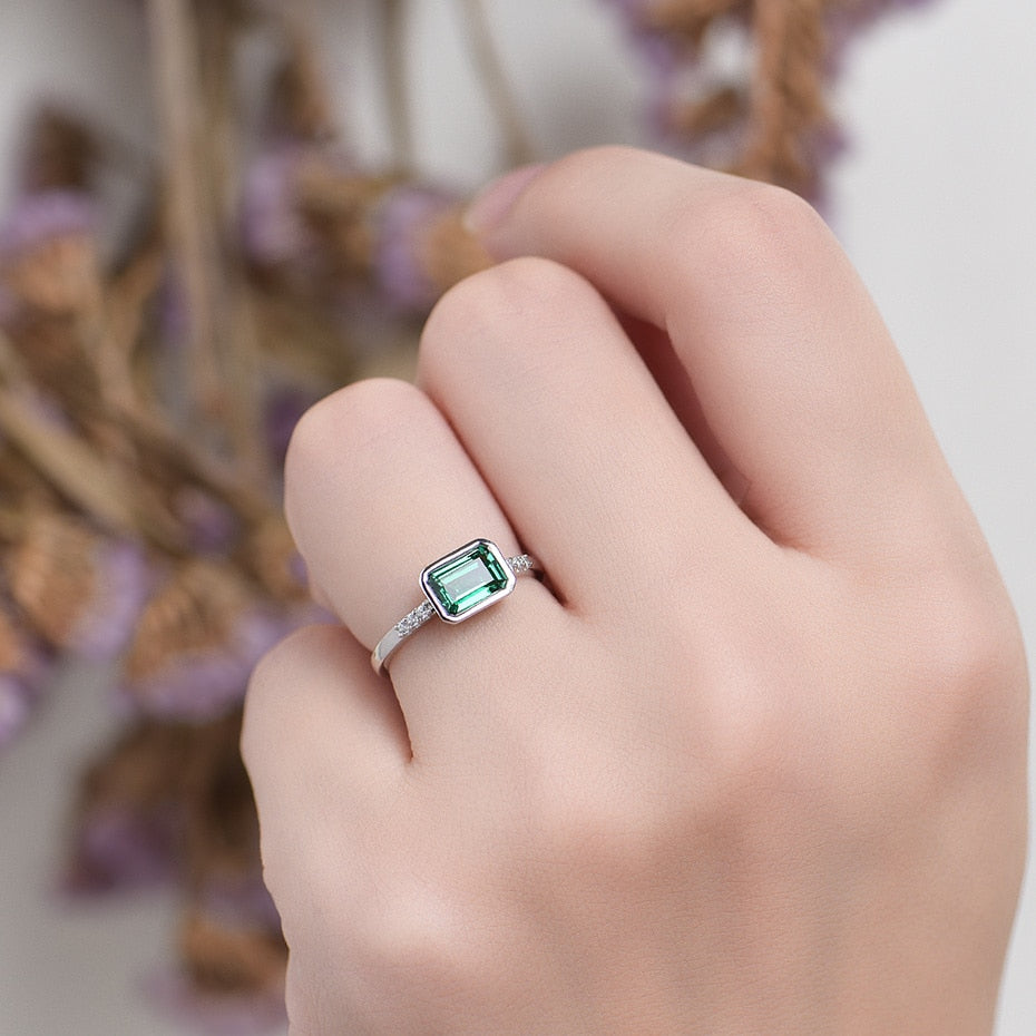 Emerald Bezel Engagement Ring / Women's Ring 925 Silver - Pre Order 2-3 weeks