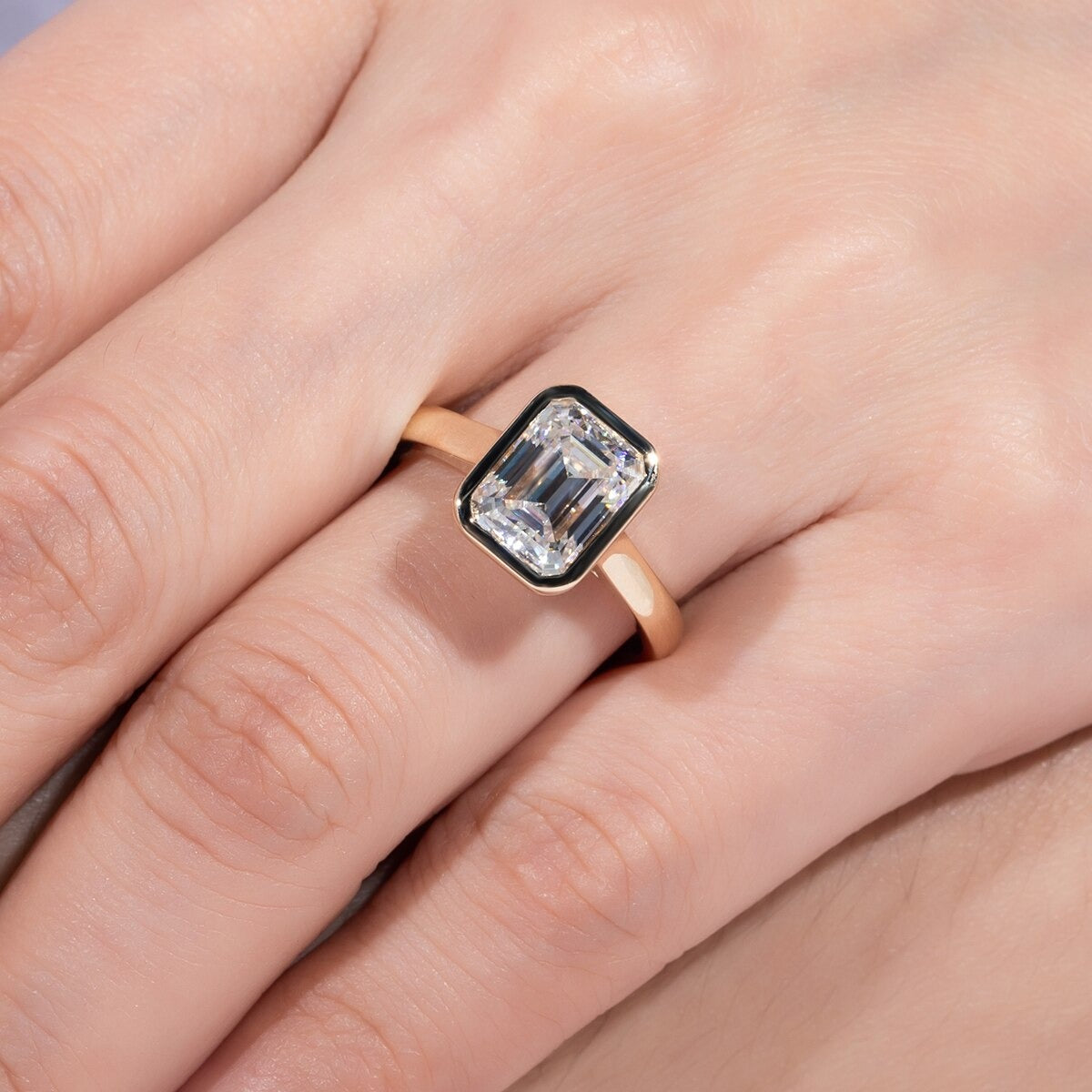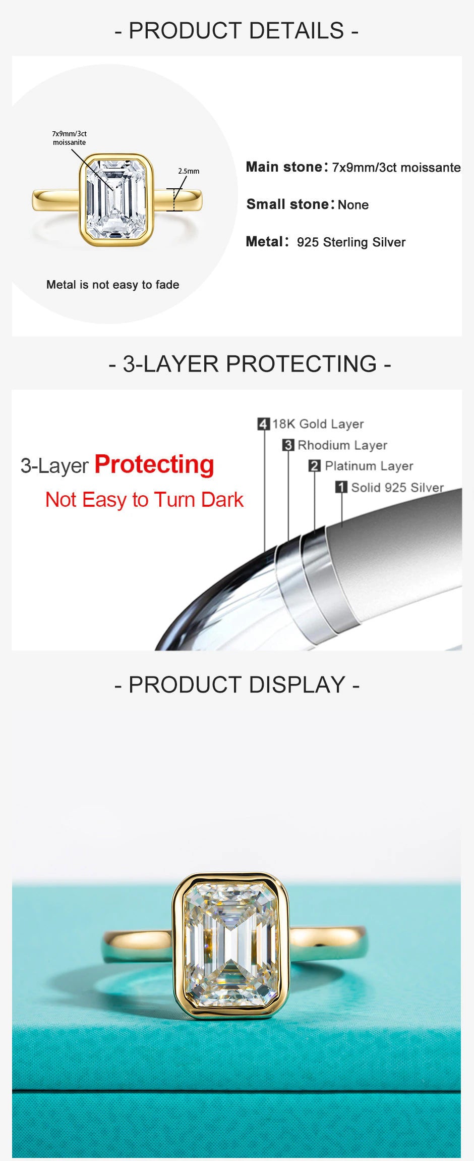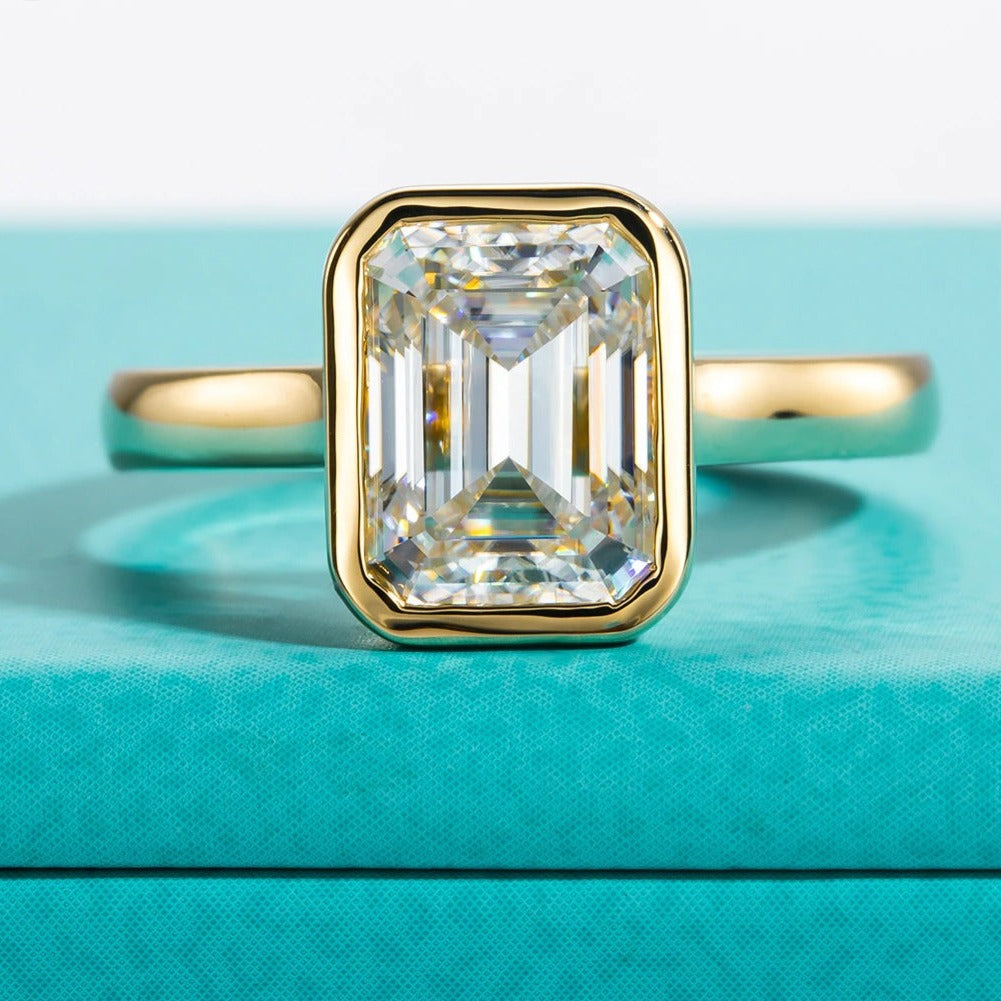 Emerald Cut Bezel Moissanite Engagement Ring 925 Silver