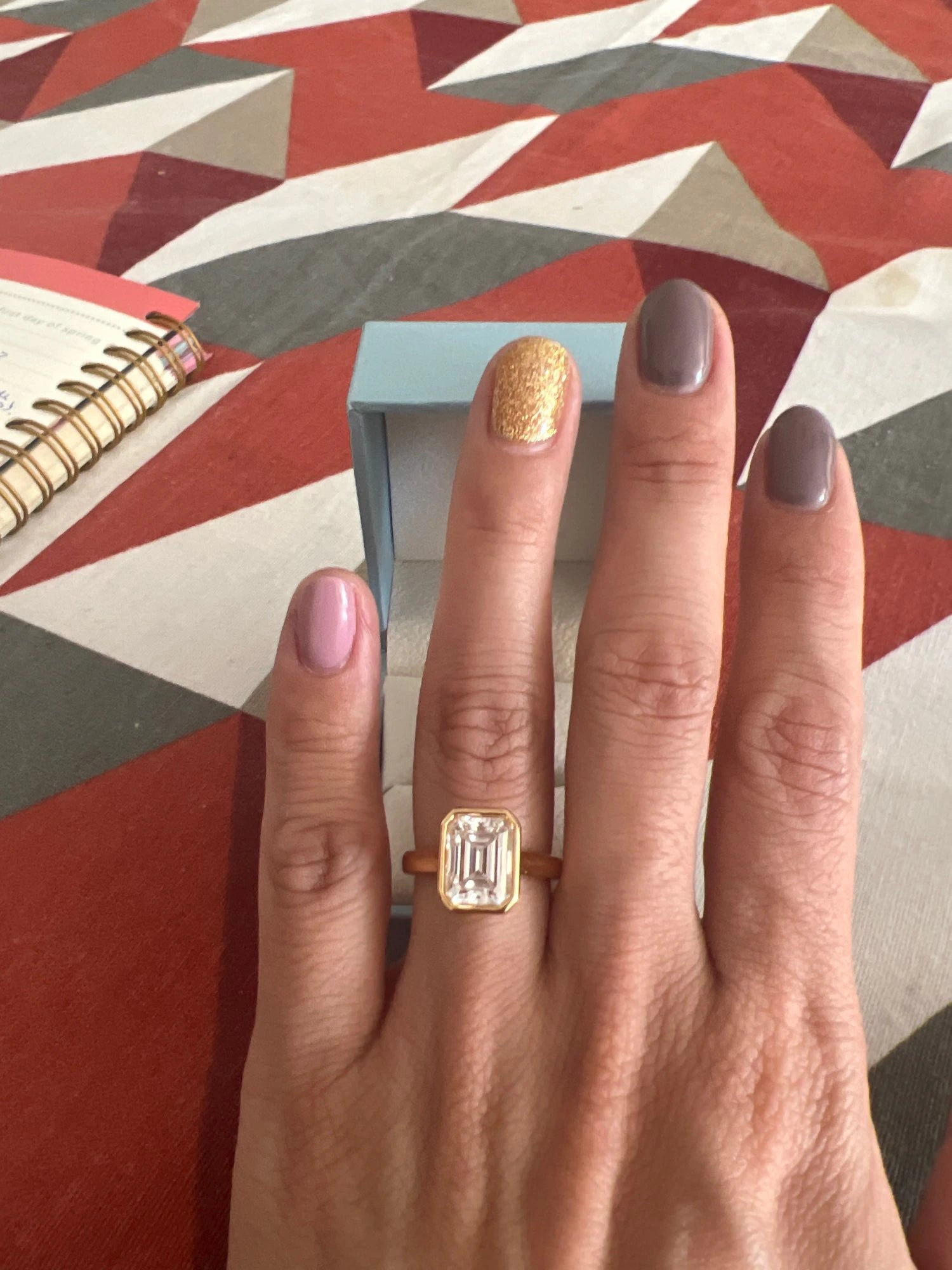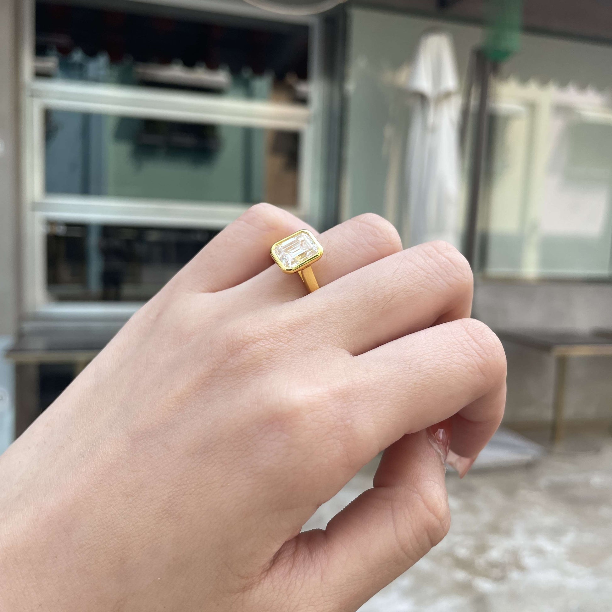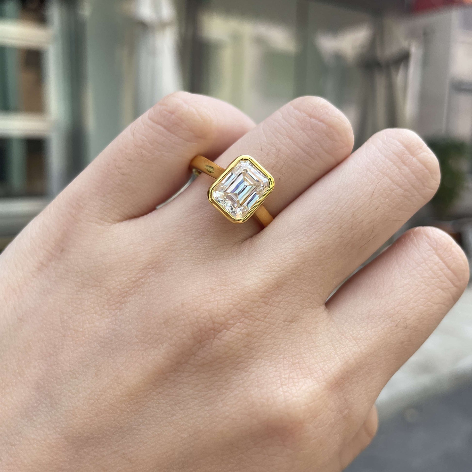 Emerald Cut Bezel Moissanite Engagement Ring 925 Silver