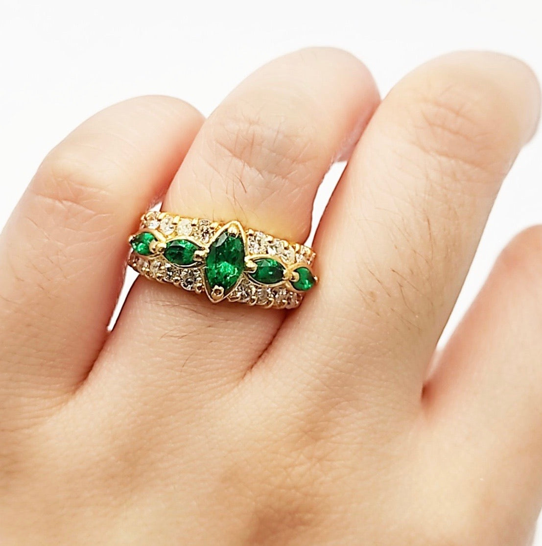 Emerald Marquise Diamond Half Eternity Ring/ Women's Ring in 18K Gold