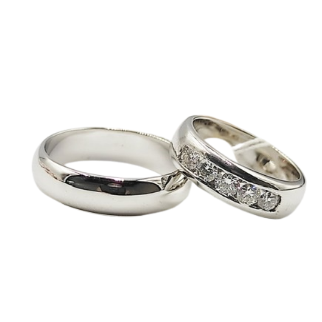 Five Diamond Channel Half Eternity Wedding Rings 14K White Gold