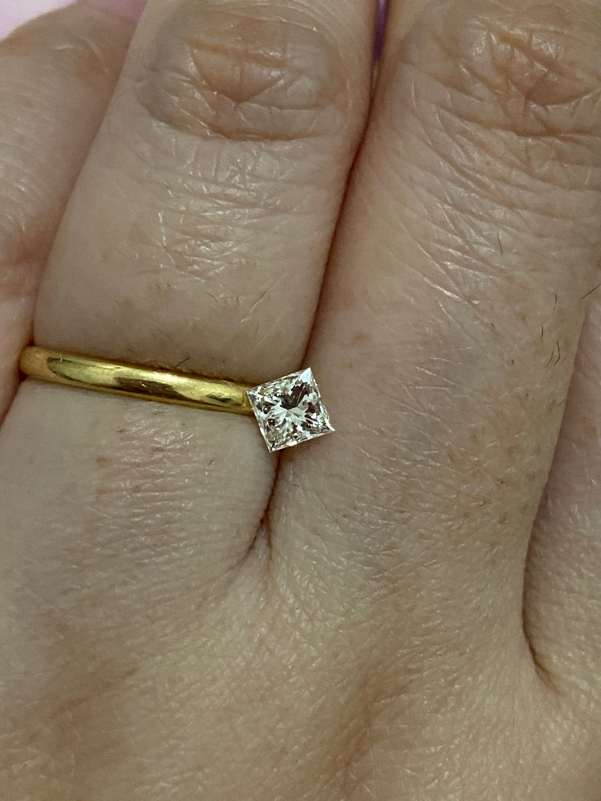 18K Gold .47ct GIA Diamond Princess Solitaire Engagement Ring Features: