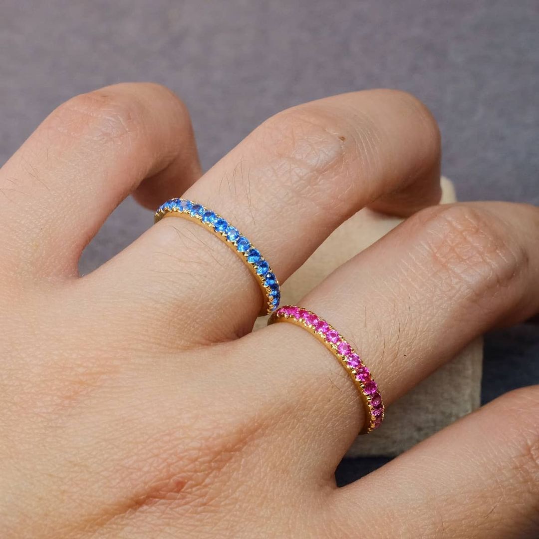 BLAIRE Half Eternity Birthstone Bridal Wedding Ring / Women's Stacking Ring