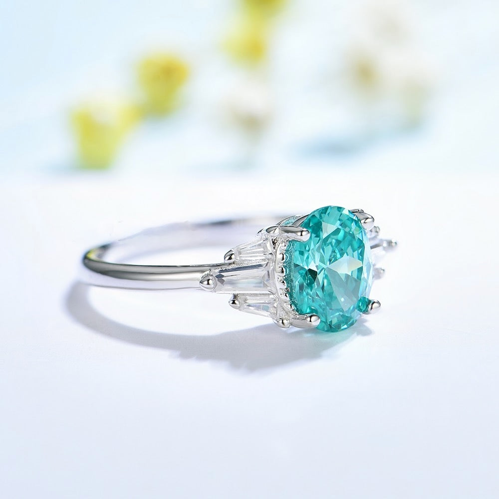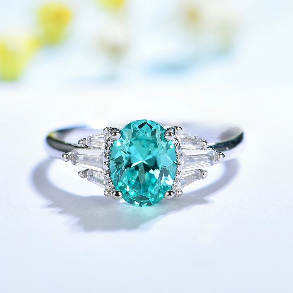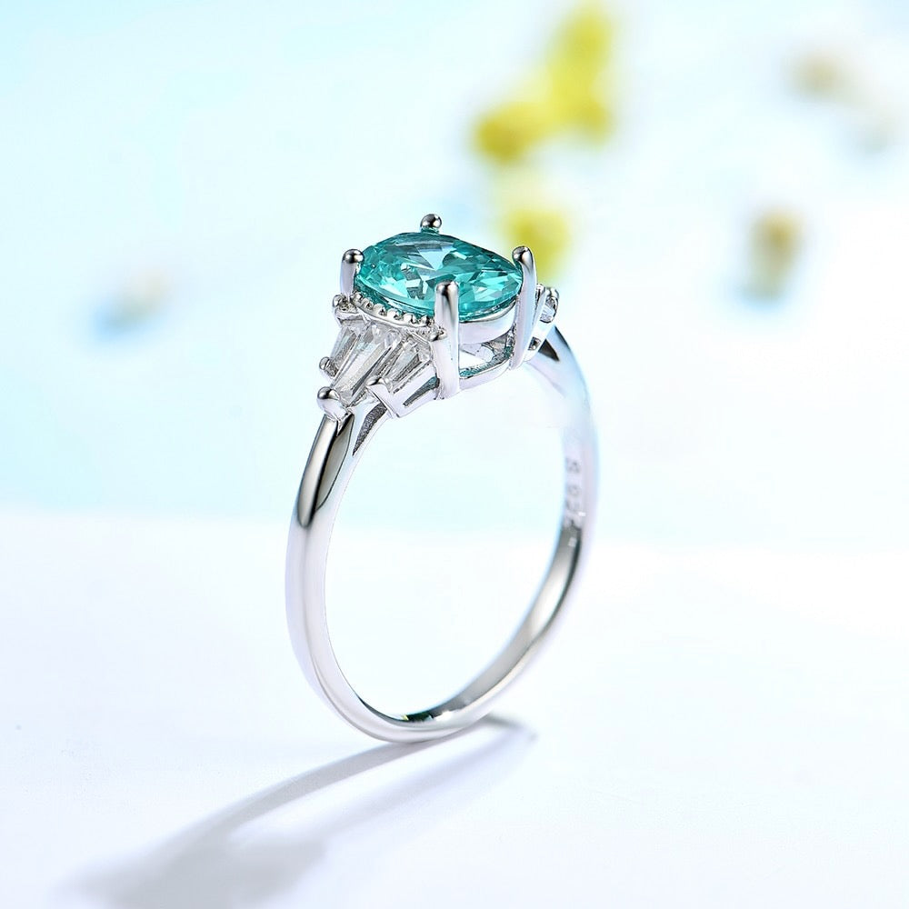 Mint Sapphire Paraiba Tourmaline Engagement/Women's Ring 925 Silver