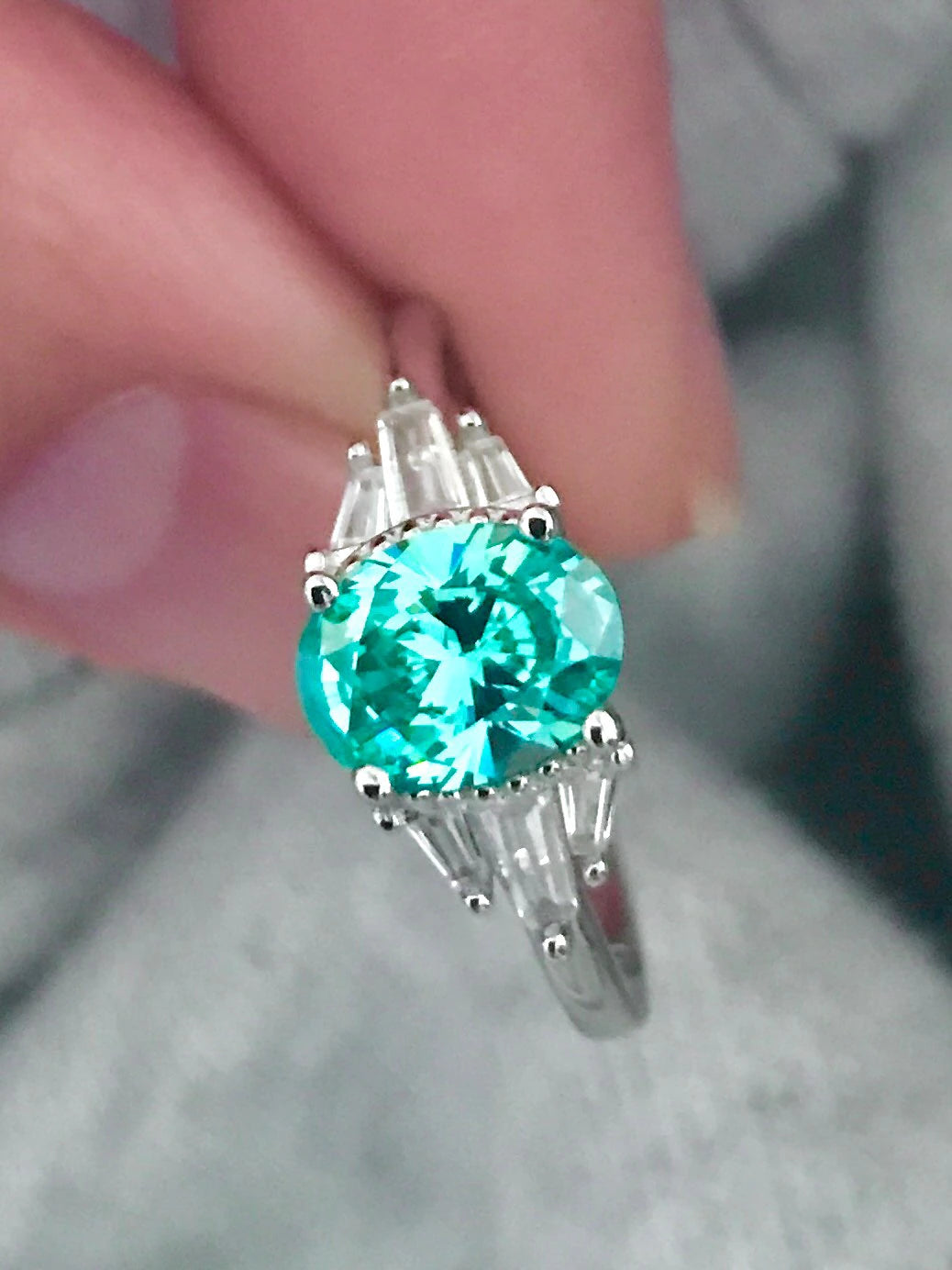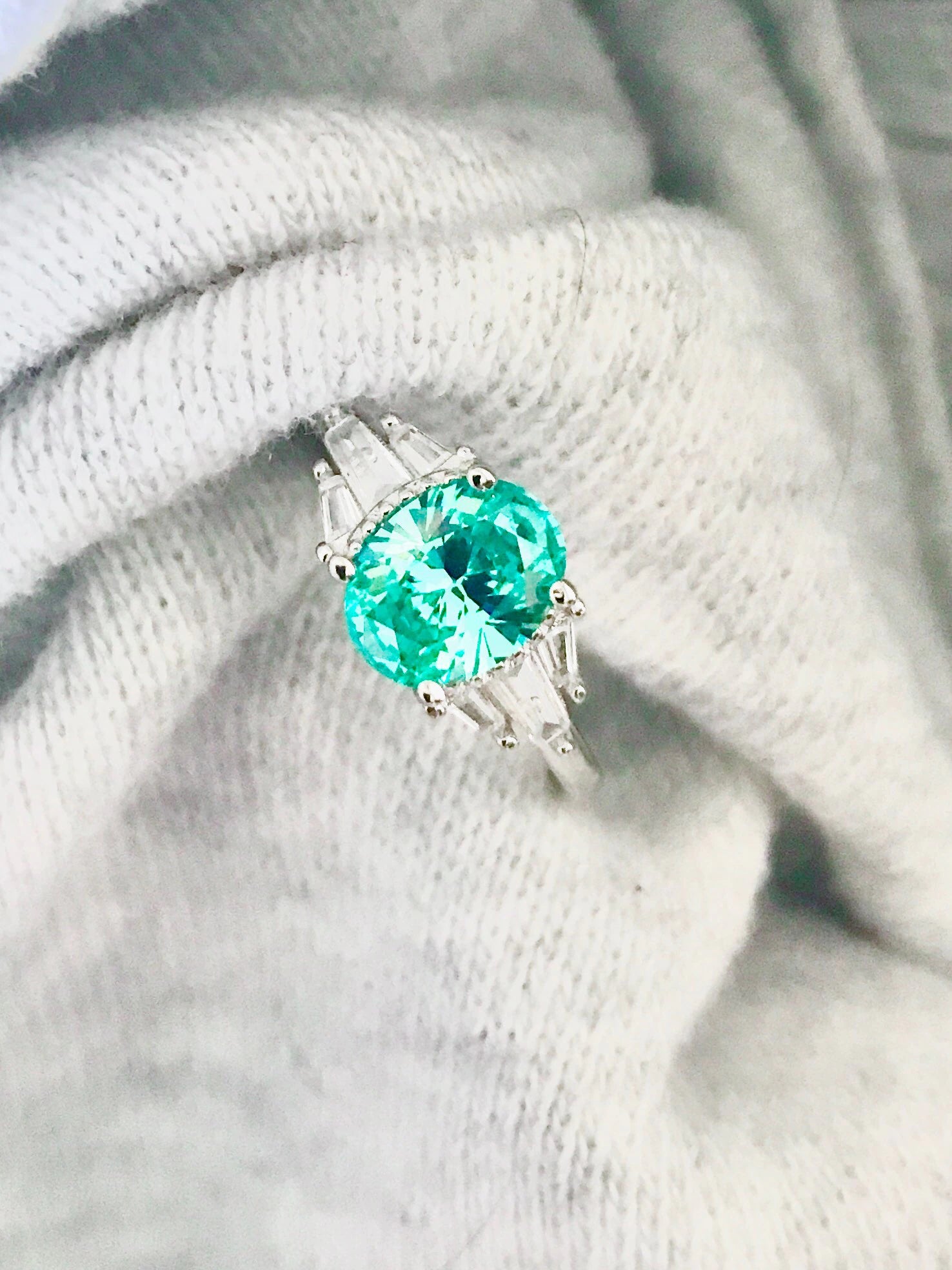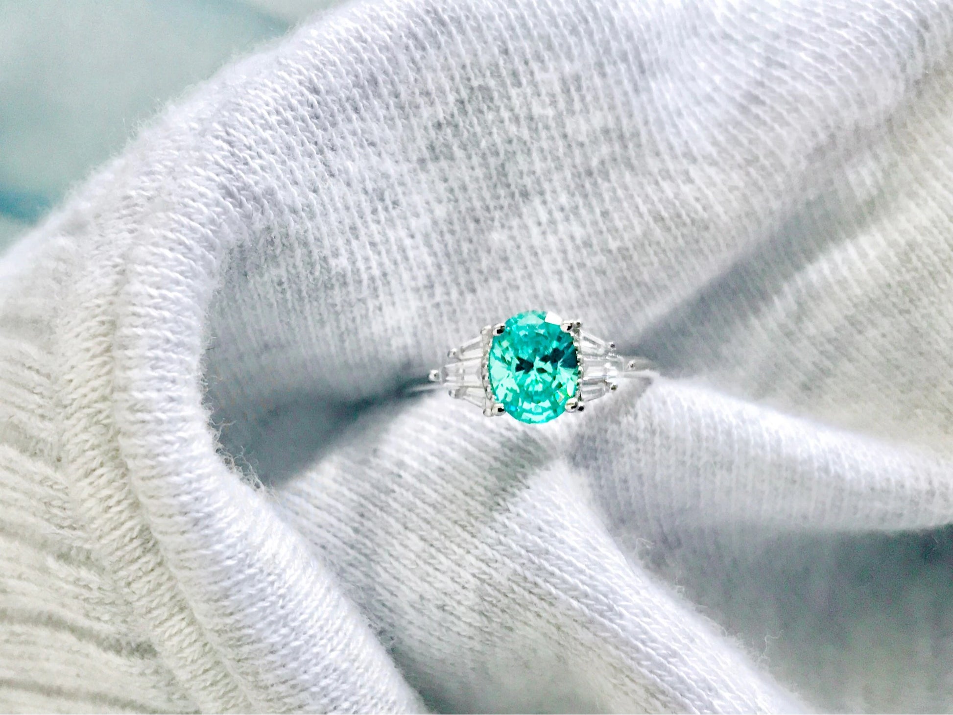 Mint Sapphire Paraiba Tourmaline Engagement/Women's Ring 925 Silver