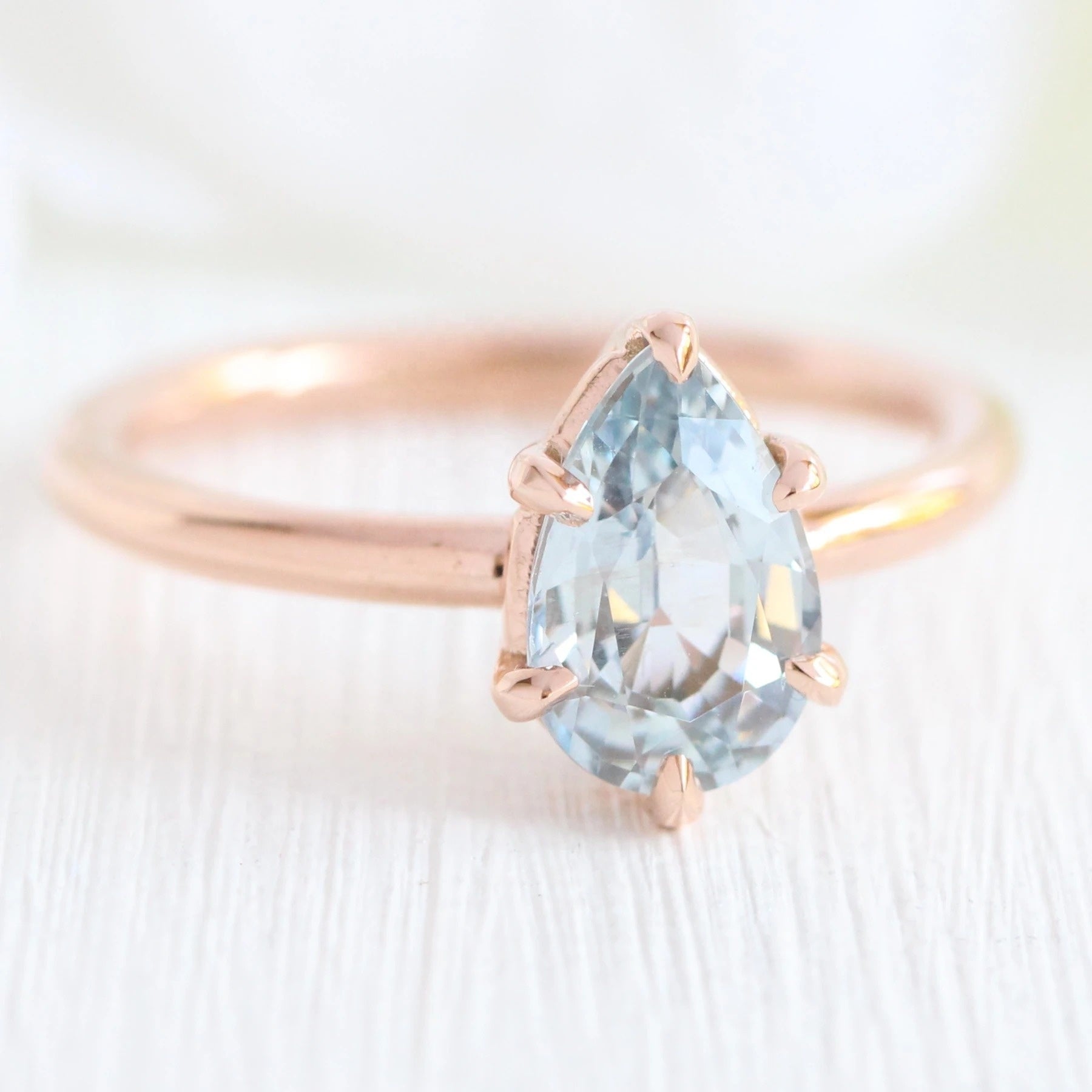 Pear Aquamarine Solitaire Engagement Ring Gold