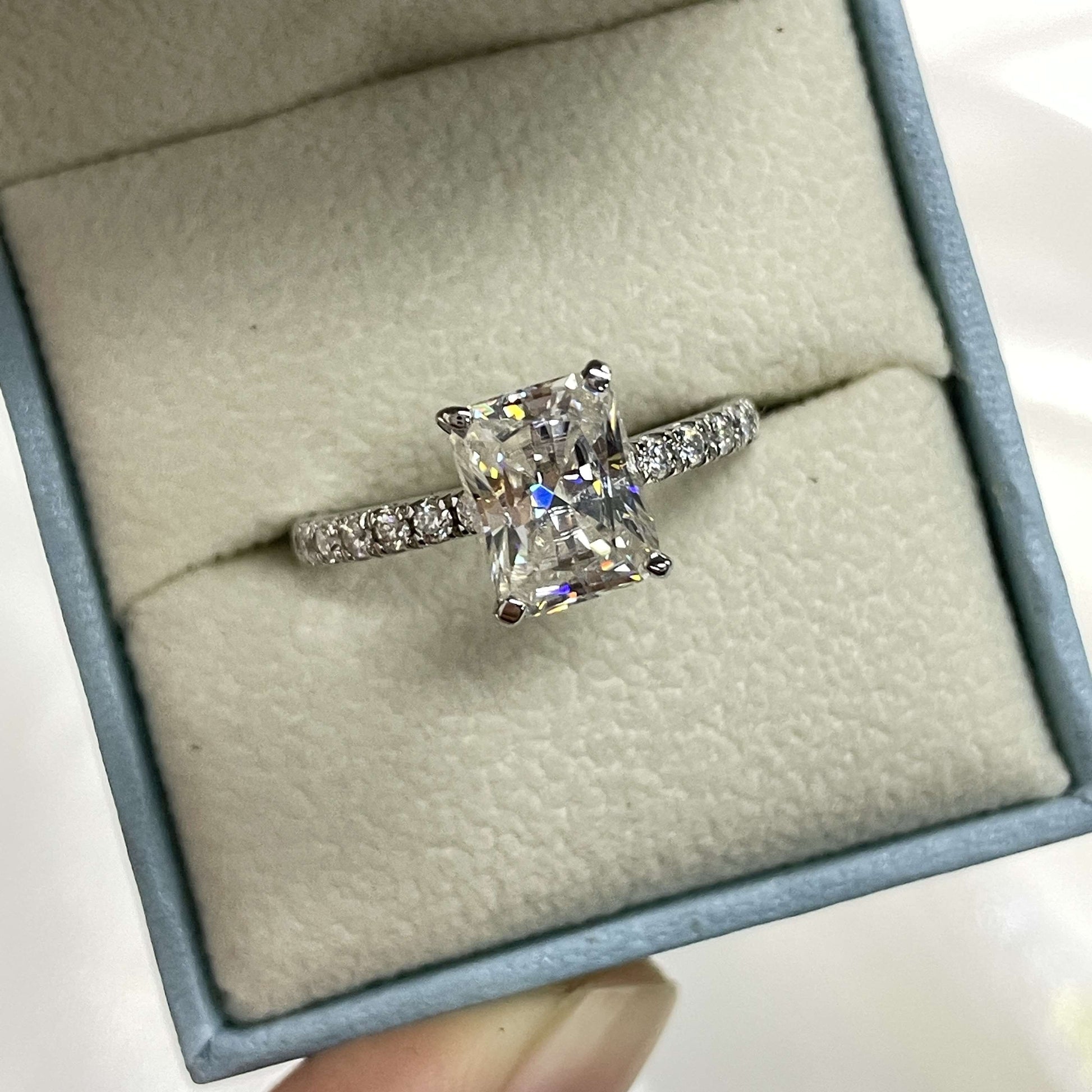 Radiant Cut Moissanite Engagement Ring Features:
