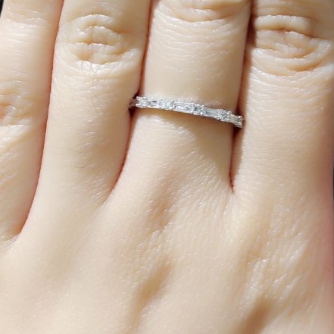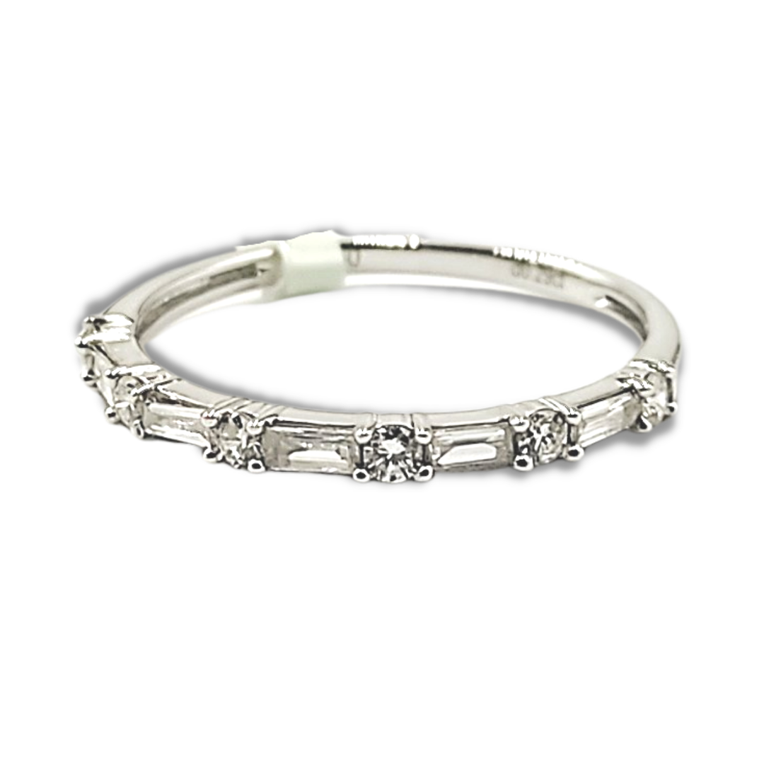Round & Baguette Diamond Half Eternity Ring, Wedding Band for Women