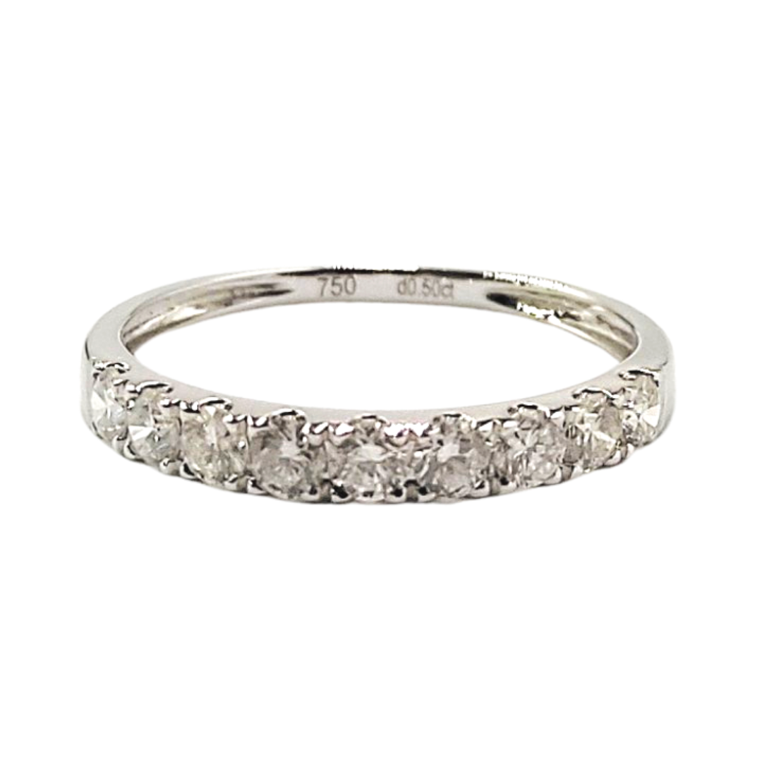 Round Diamond Half Eternity Ring, Wedding Band for Women 18K White Gold